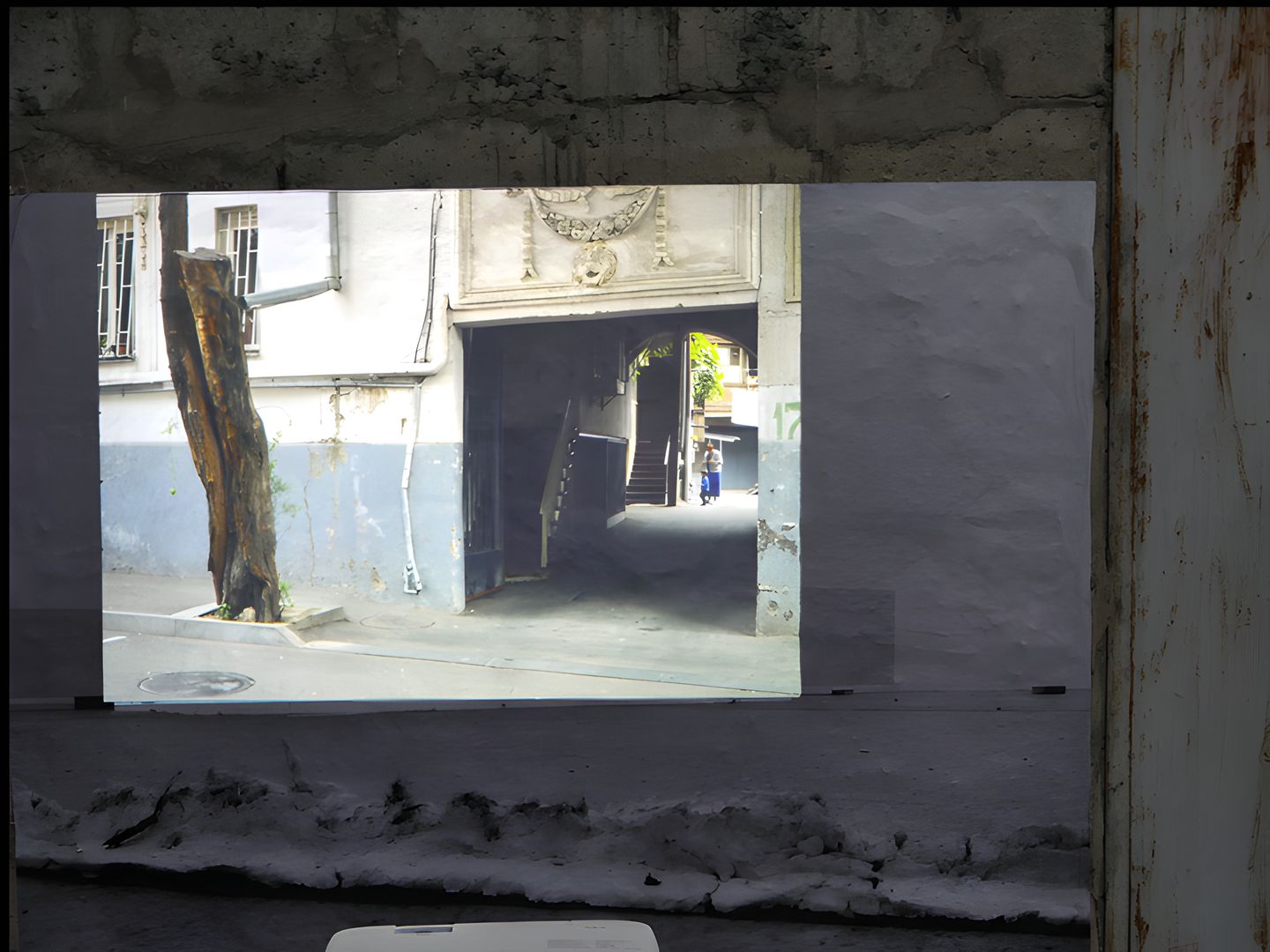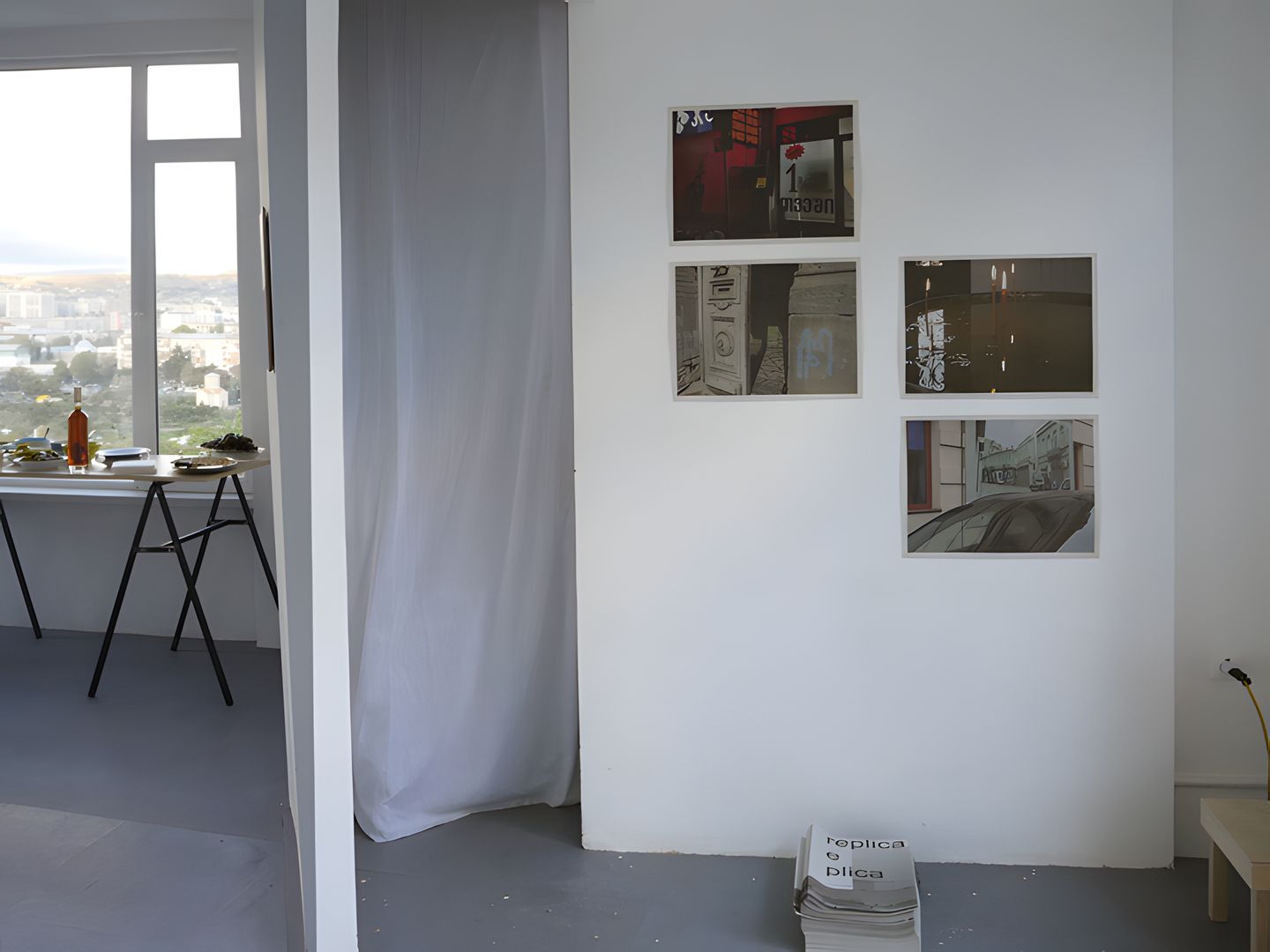 Für ihre Arbeit Replica arbeitet Alexandra vom Endt vor Ort und nähert sich materiell an die fremde Umgebung an. Dabei verknüpft sie ihre Wahrnehmungen in Tbilisi mit der Wahrnehmung der gewohnten Umgebung im Ausstellungsraum Klingental. Der Blick der Künstlerin auf das Unbekannte wurde an der Finissage im Aussenraum der Nectar Gallery präsentiert. Auf formale Abbildungen des Ausstellungsraums in Basel werden die neuen Eindrücke projiziert und so der Blick auf Fremdes und Eigenes miteinander in Verbindung gebracht. In ihrer Arbeit präsentiert vom Endt neben dieser temporären Installation auch eine Zeitung, sowie Tonobjekte, die die Entdeckungen in Tbilisi formal in sich tragen. Mit den so erstellten Abzügen ihrer Umgebung setzt die Künstlerin ihr Spiel mit den Eigenschaften der Fotografie fort.